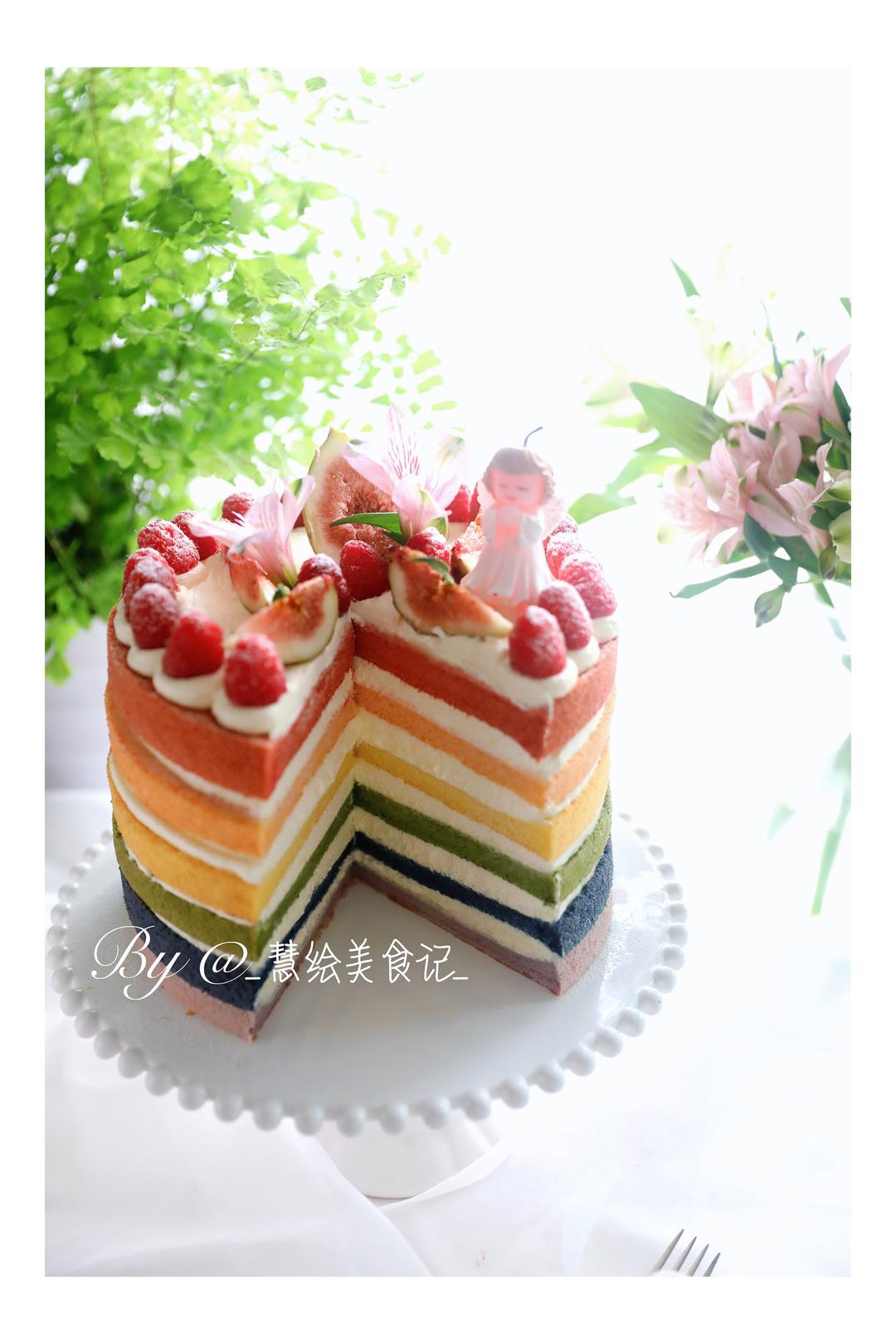 上个月生日给自己做的彩虹裸蛋糕,