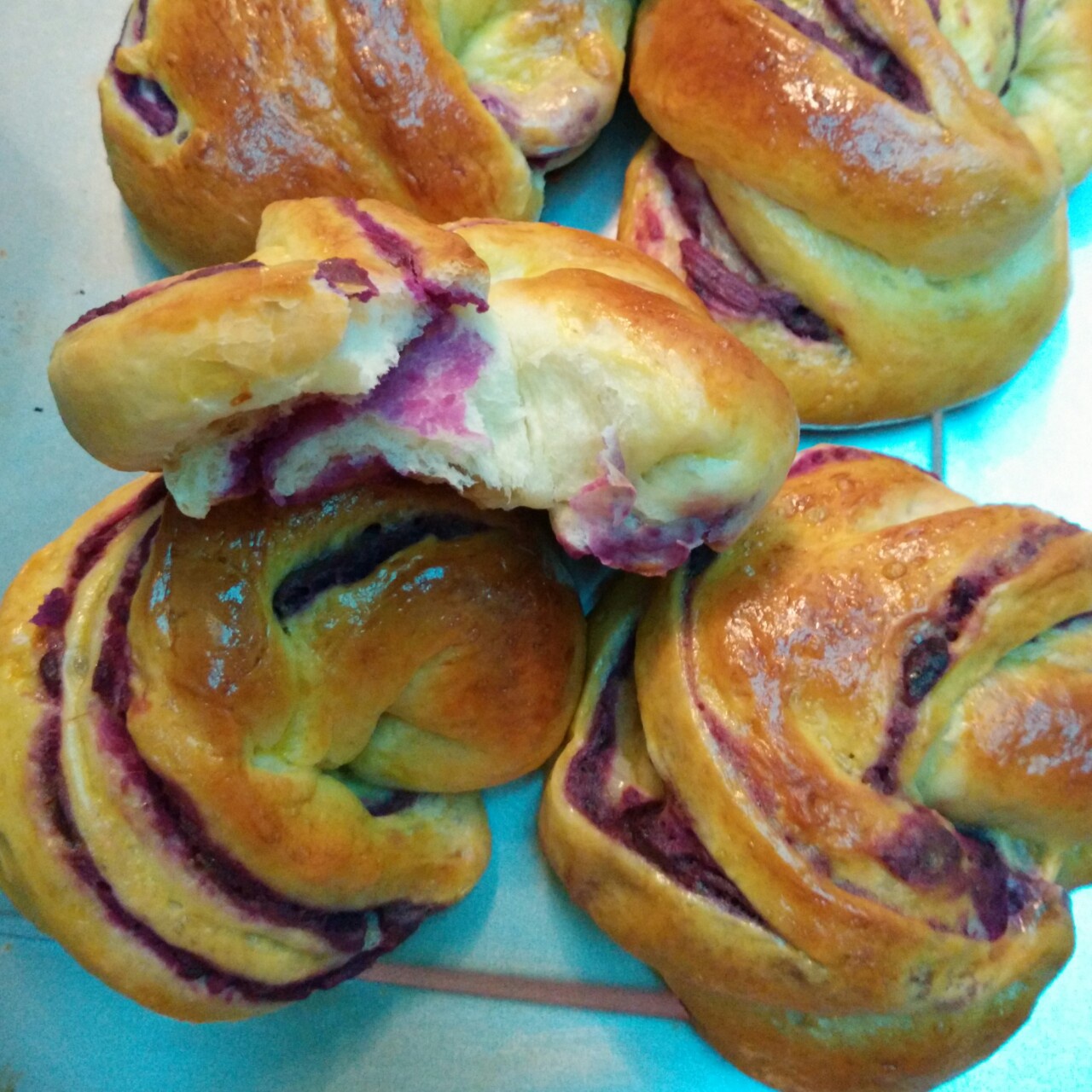 牛奶和奶油放多点,发面时有点稀,刚烤出来,不知味道如何?