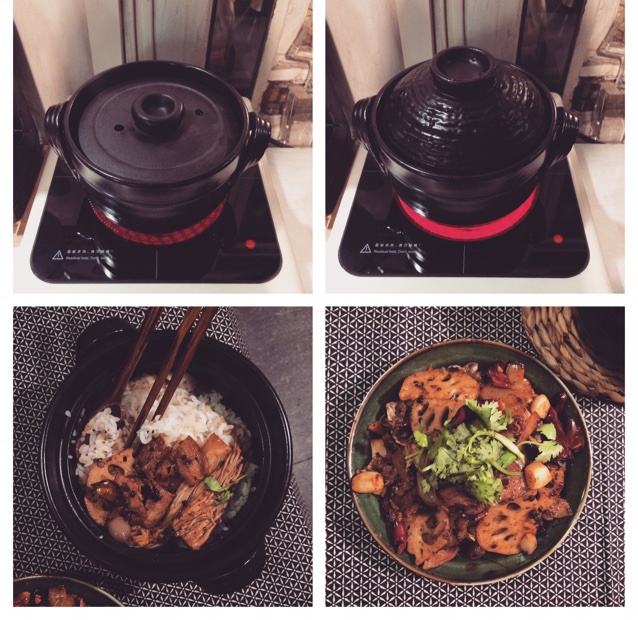 这么古朴的小陶锅放在现代感的电陶炉上煮还真是有点违和。锅子和炉子都很小的,炉子是专门煮茶煮咖啡的迷...