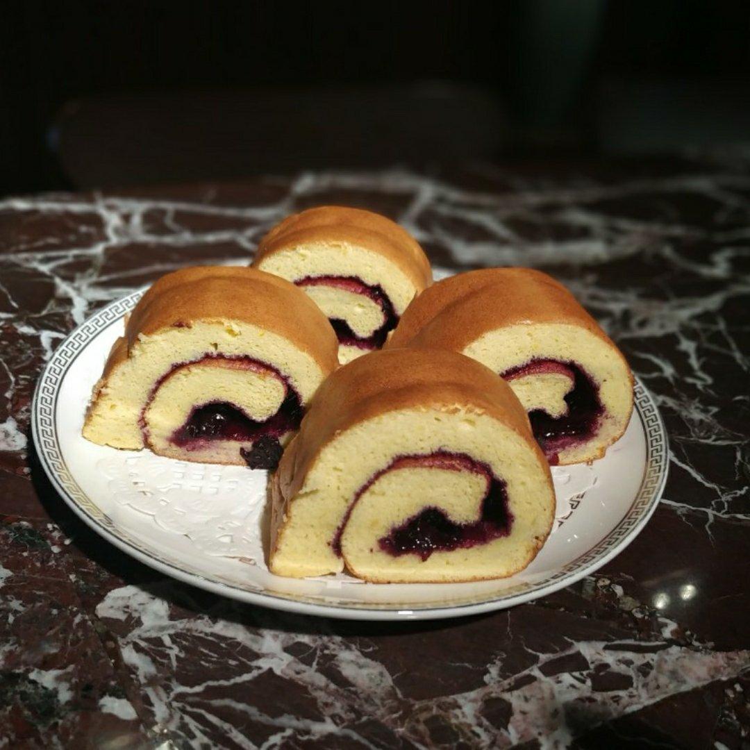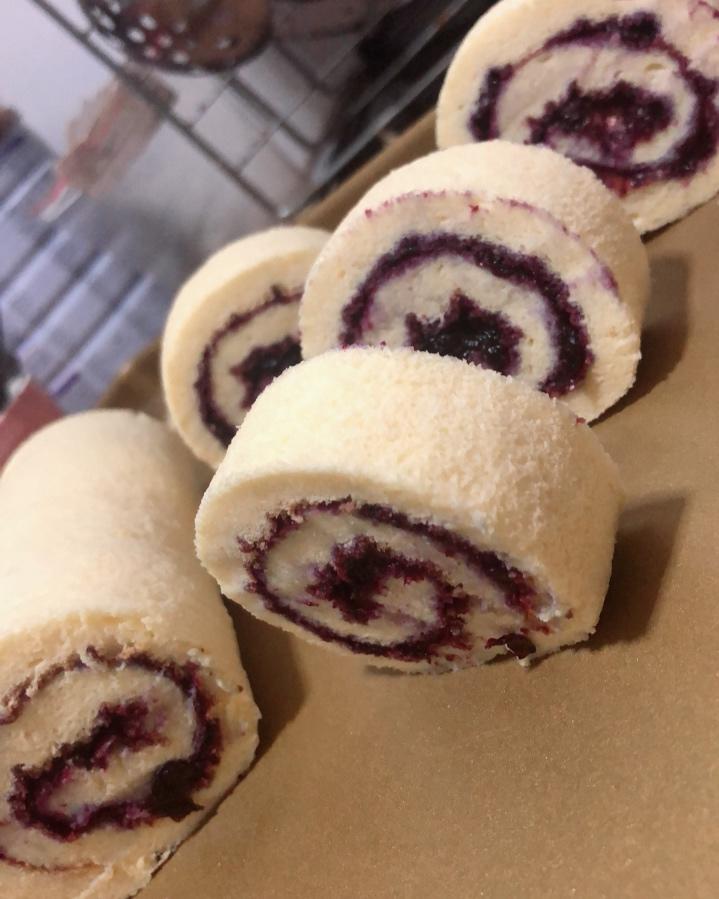 蓝莓果酱蛋糕卷。