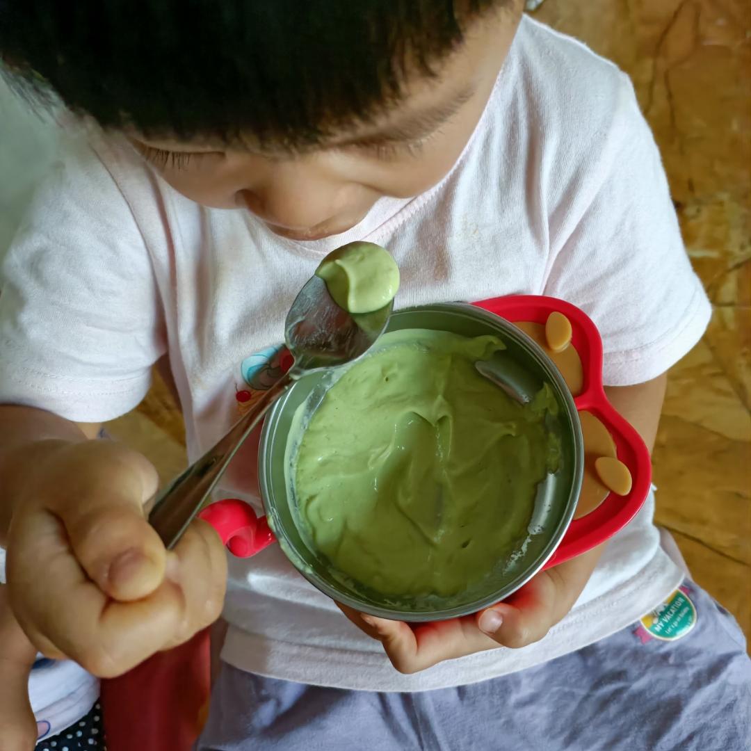 牛油果 ,打好的奶昔很奈斯!很稠,像吃雪糕一样!美好!清新的绿色,像哈密瓜味...