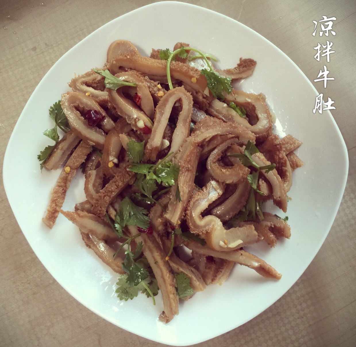 老公带回来点儿卤牛肚,味道单调了些。