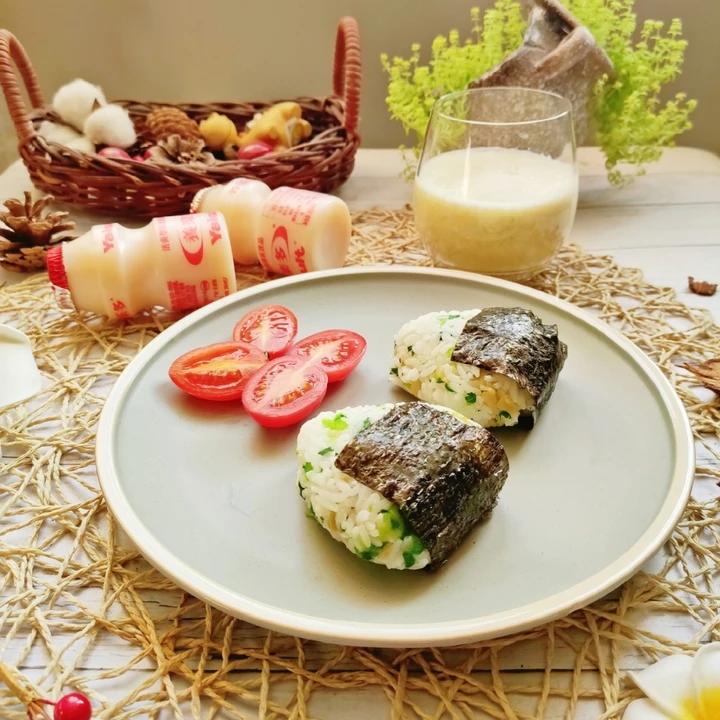 没有饭团模具,纯手工打造😃 当做下午茶来吃啦,味道很不错哟^ω^ 小米宝自作主张将芹菜的量减半,苹果的量增加一倍,有一点...