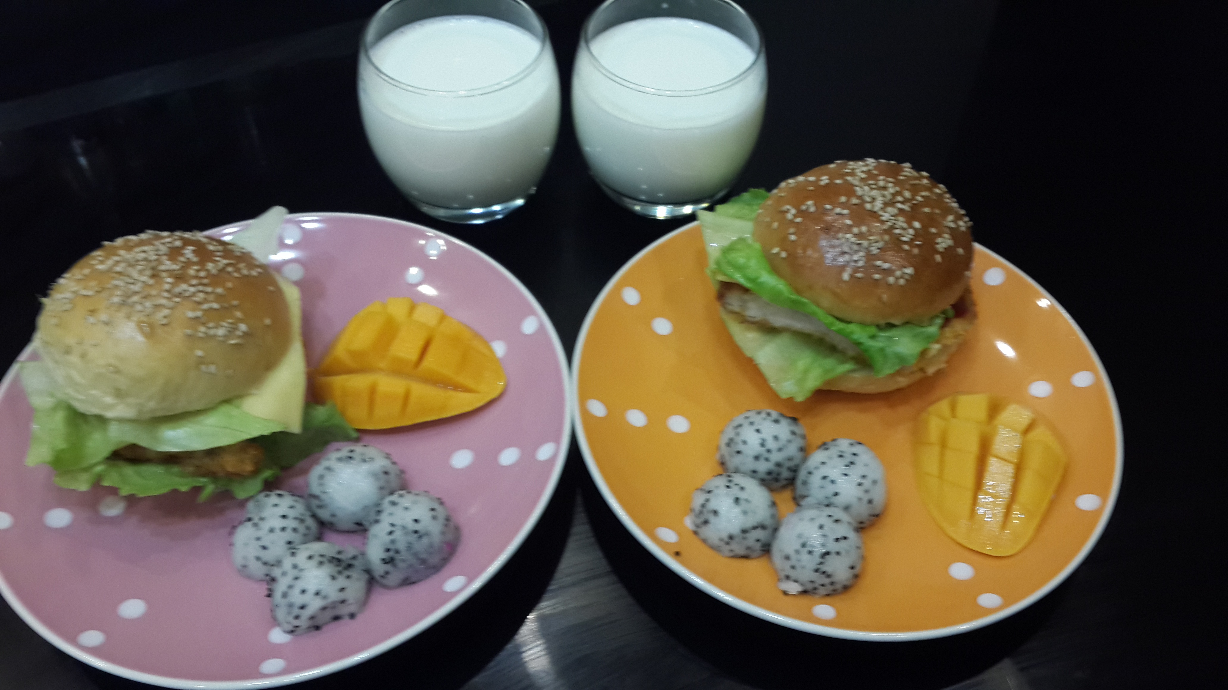 20150518 汉堡+牛奶+火龙果+芒果