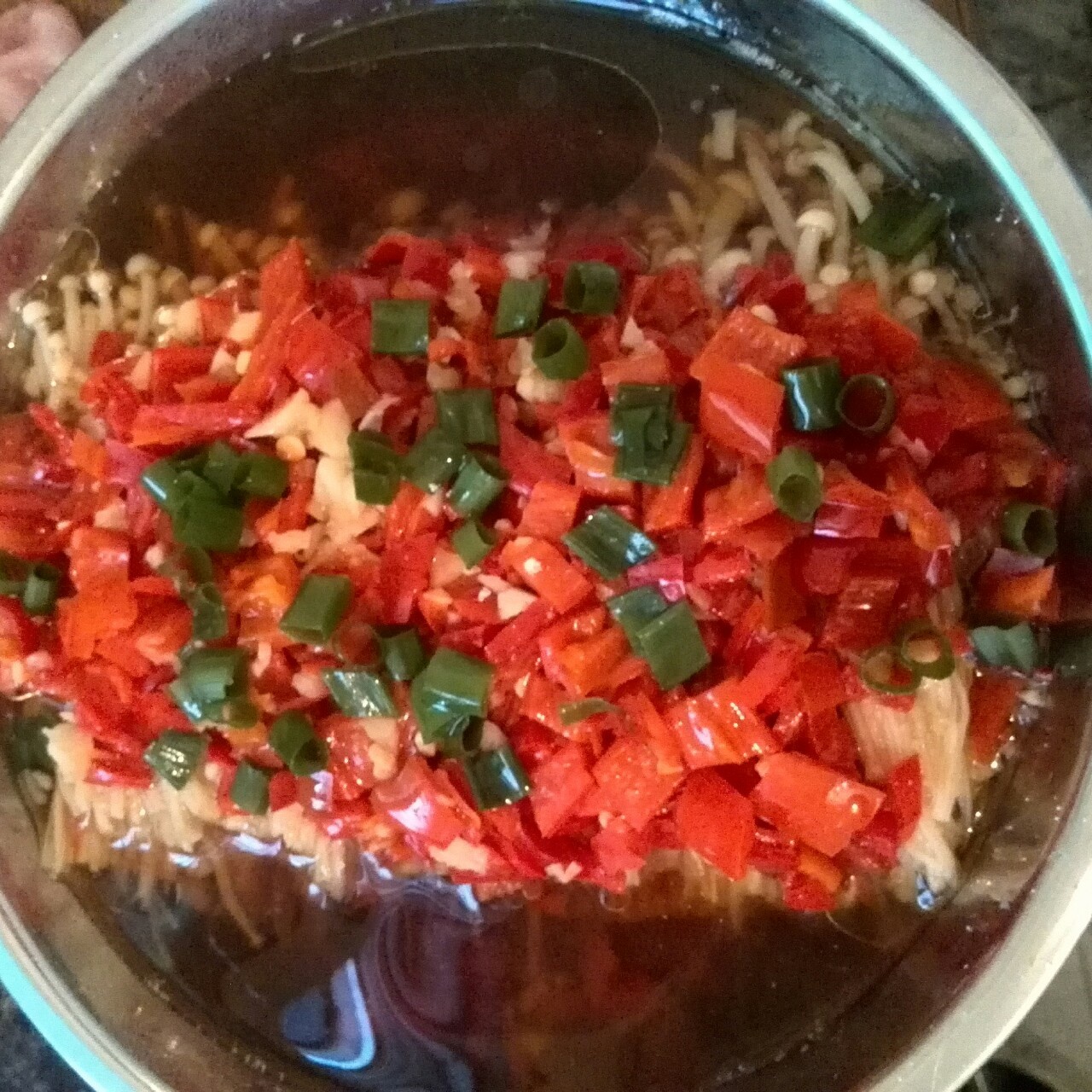 自己做的剁椒酱简直就是万能的,蒸一下金针菇也不错哦!😄😄