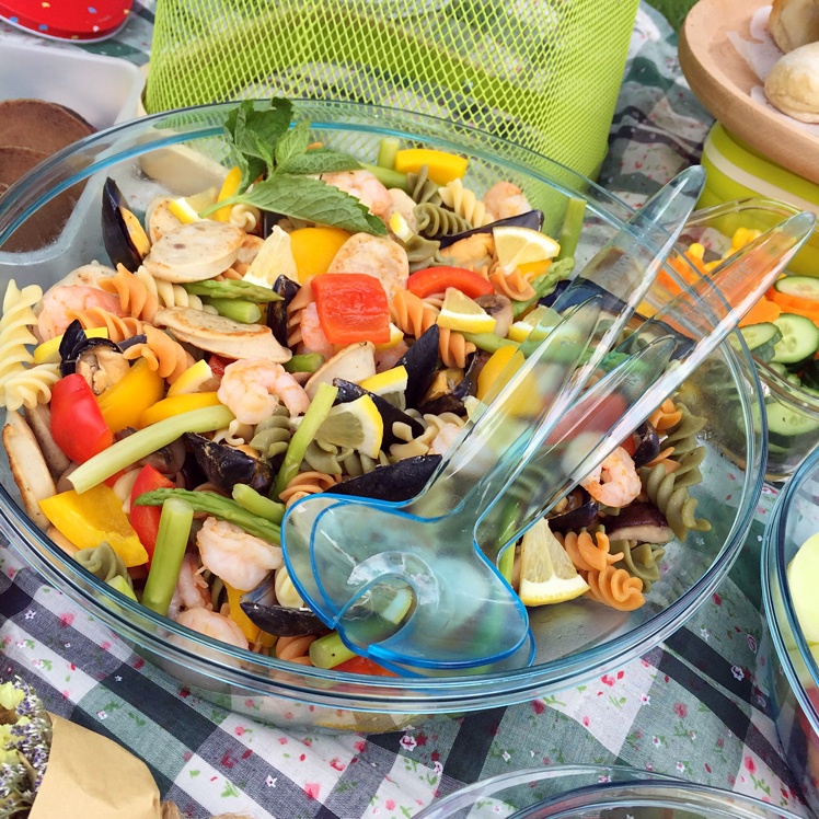 6月7日广州生物岛野餐趴。海陆什锦意粉沙拉,两款食材来自下厨房哦——山姆会员店三色螺丝粉、青虾仁。还...