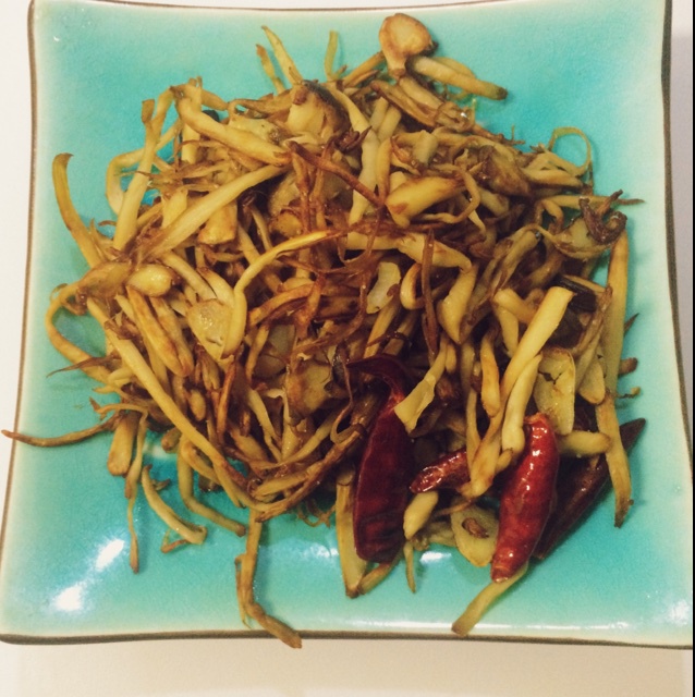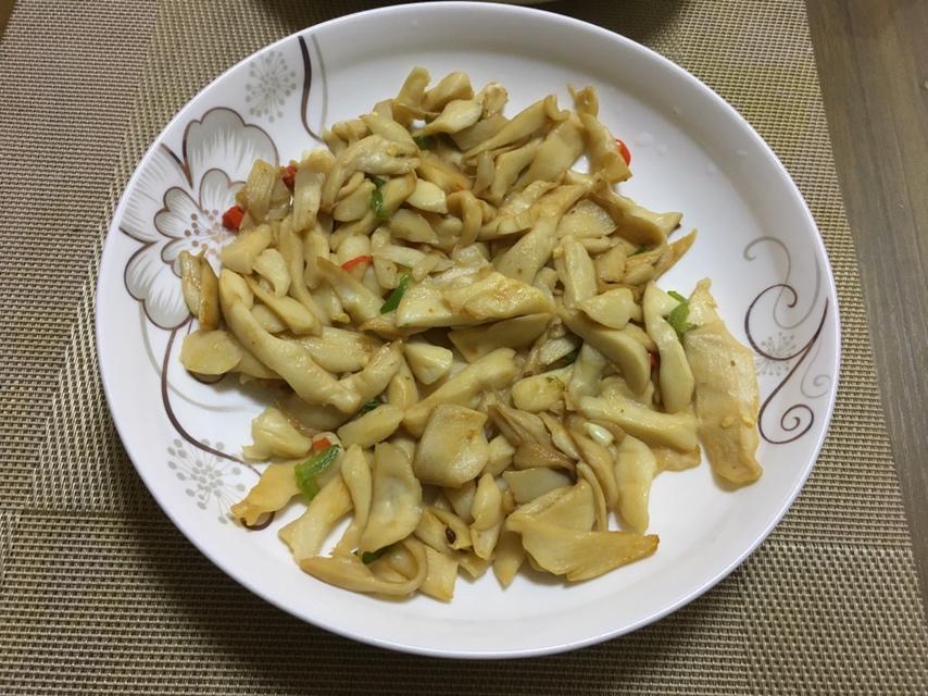 中午第一次学做的干煸手撕杏鲍菇。味道真的很赞……