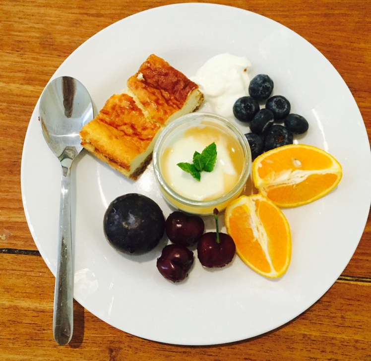 考完了!那么早饭就吃自制New York cheese cake 新鲜酸奶和水果啦啦啦啦啦 #早餐•2015年5月19日...