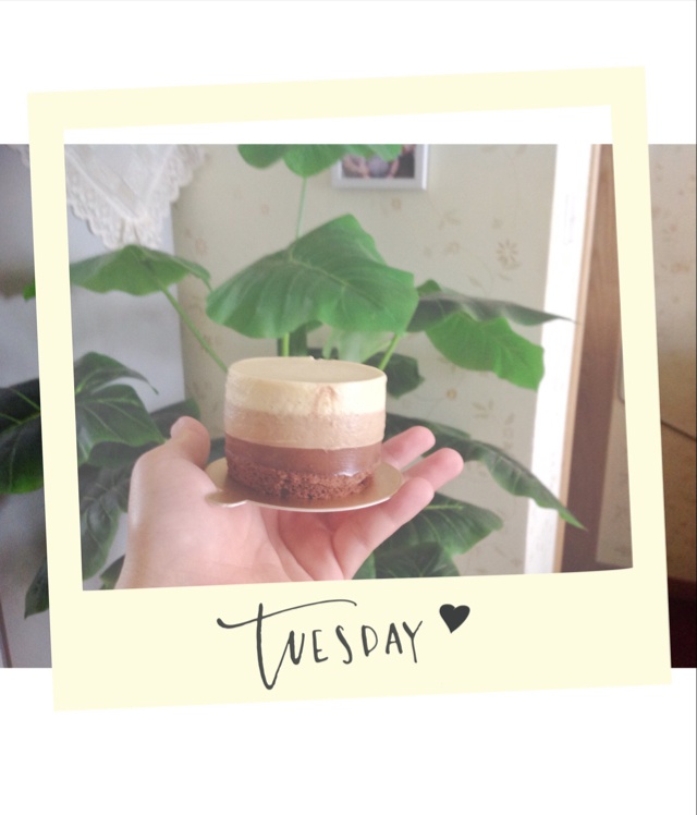 老姐@翎小睿做给朋友的生日蛋糕,剩下的边角料给我做了一个,简直真爱啊~好吃...