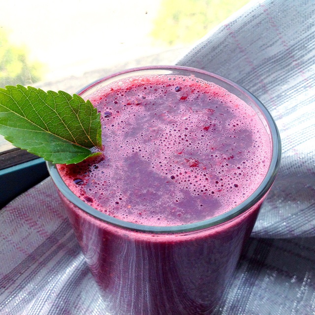 最近每天的饭后水果都是桑葚,今天来杯鲜榨桑葚果汁喝。口感浓郁,色泽娇艳。