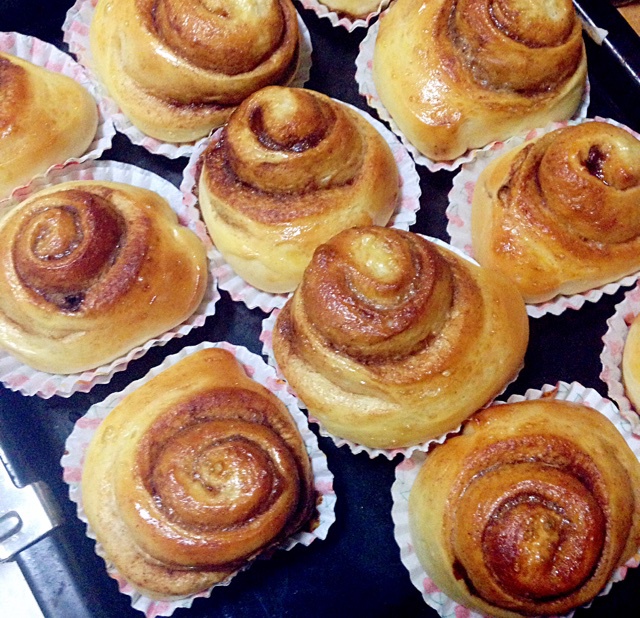 没用黄油,没那么香。第一次揉面手法比较随意,吃起来还是不错的~感觉肉桂和糖可以再多放一点。 #晚餐•2015年5月20日...