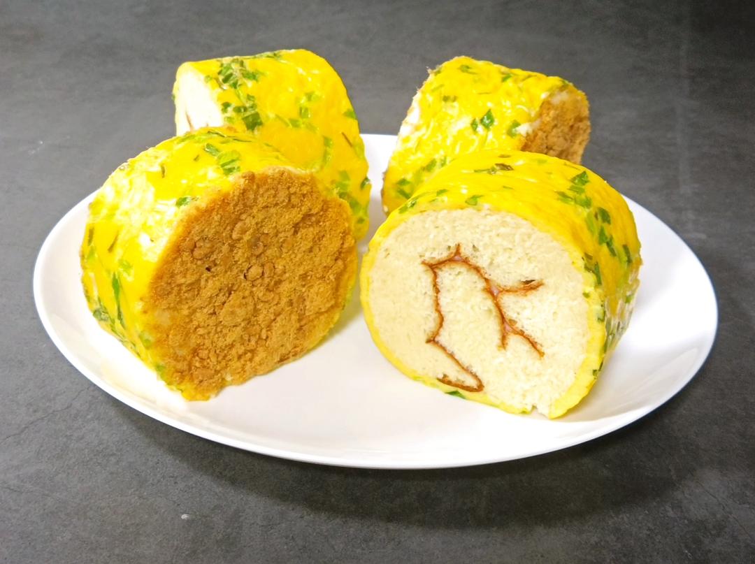 蛋皮肉松香葱面包卷