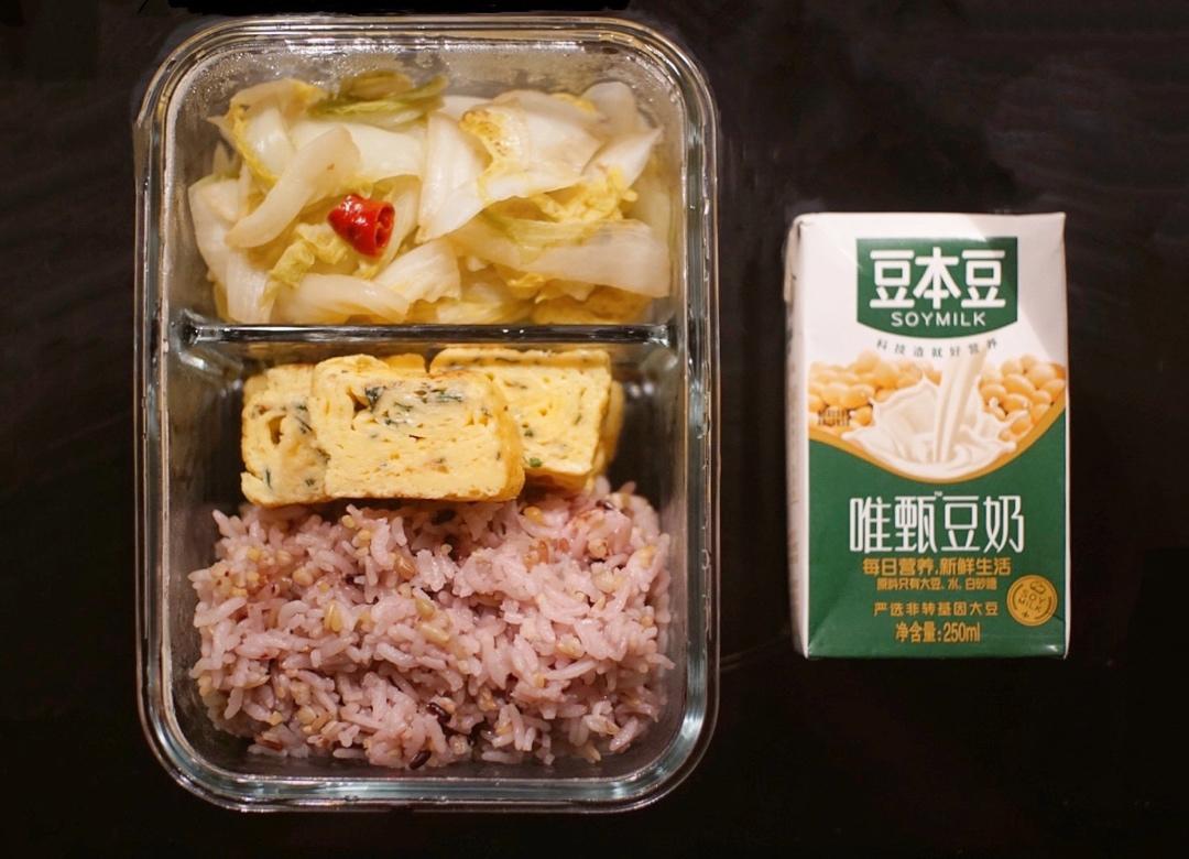 酸辣白菜+茼蒿厚蛋烧+杂粮饭