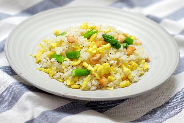 三文鱼炒饭,蛋一定要加;因为便当是要重新加热的,怕鱼肉会有腥...