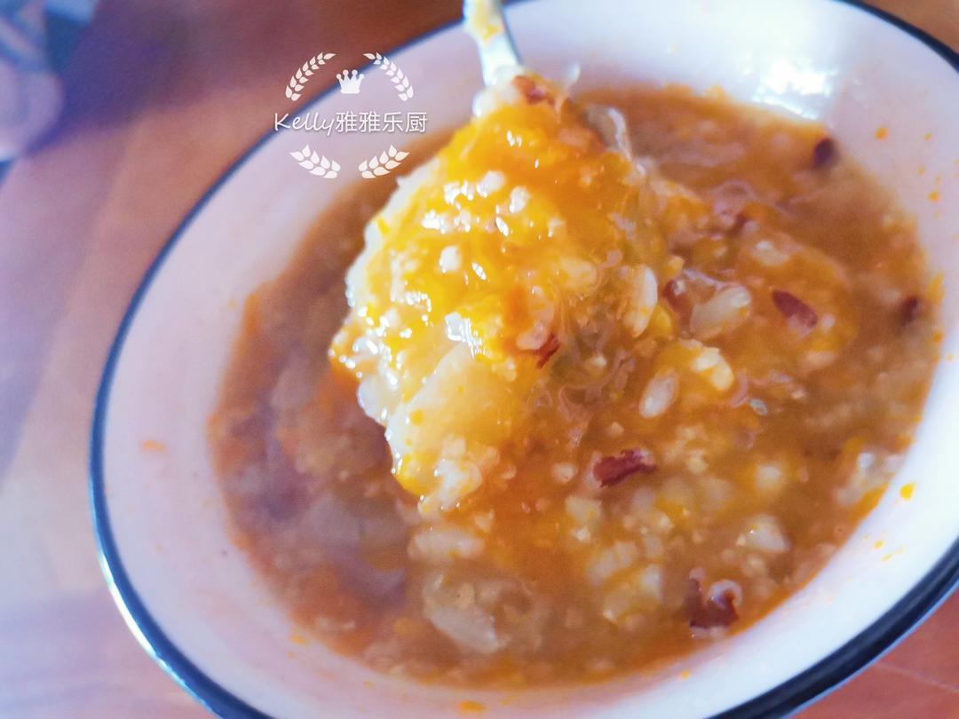 早上吃不完的五红粥,中午加点南瓜
