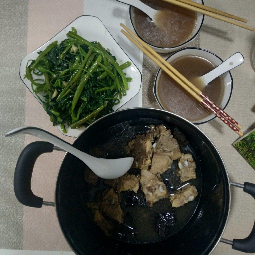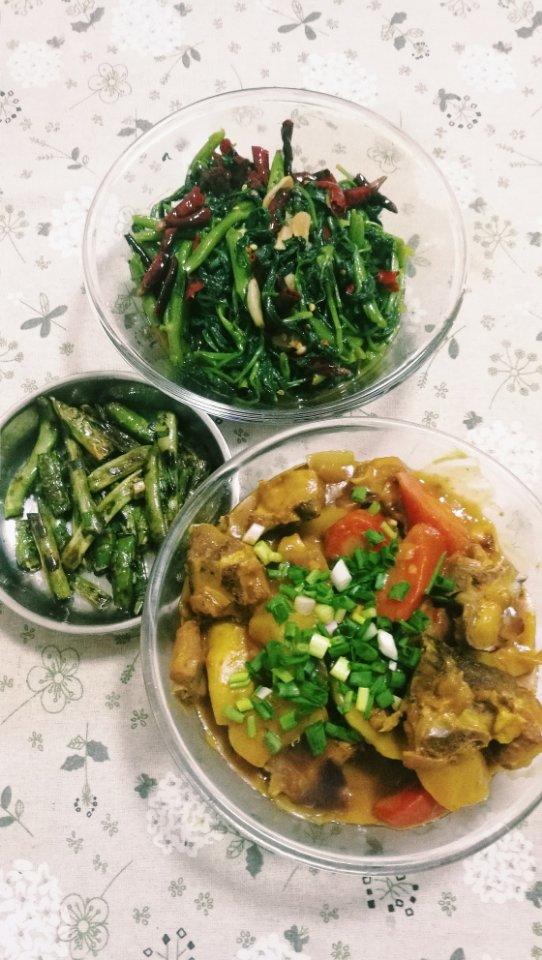 三菜没有汤,又一次料理新尝试,第一次的莴苣炒肉,缺点是皮没削好,优点是肉很嫩奥。第二次的炝炒空心菜,自我感觉很不错呀,然...