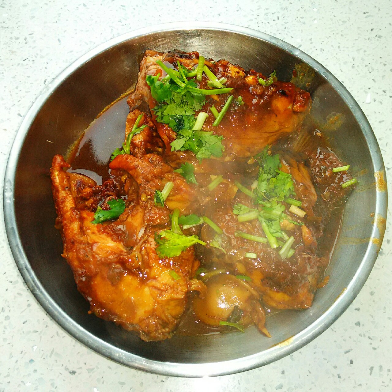 红烧鲤鱼~块。昨天同事钓的一条鲤鱼,太大了有三斤重,整个做锅不够大,只好切段儿了。没有预期的...
