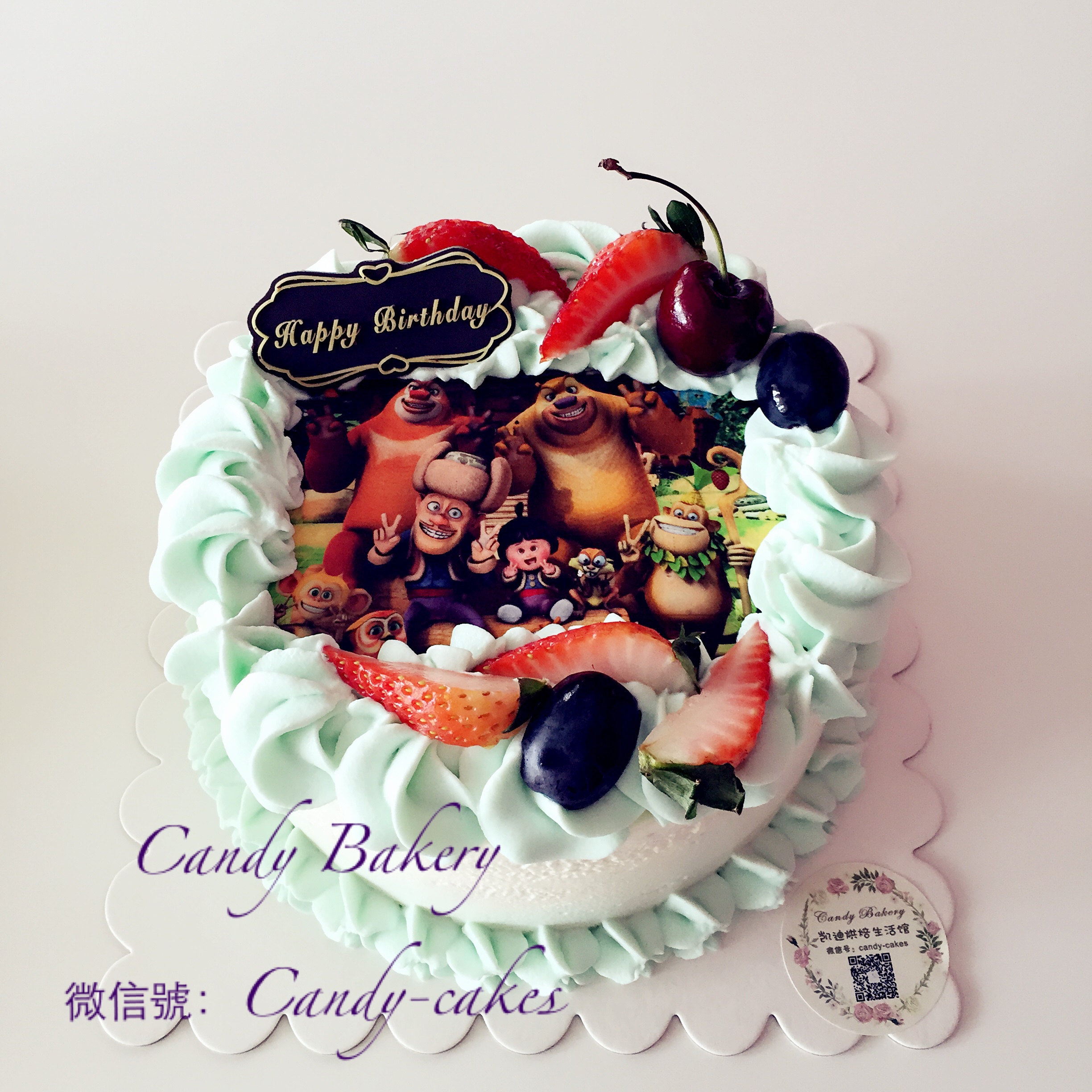 忌廉水果蛋糕~光头强款~6寸