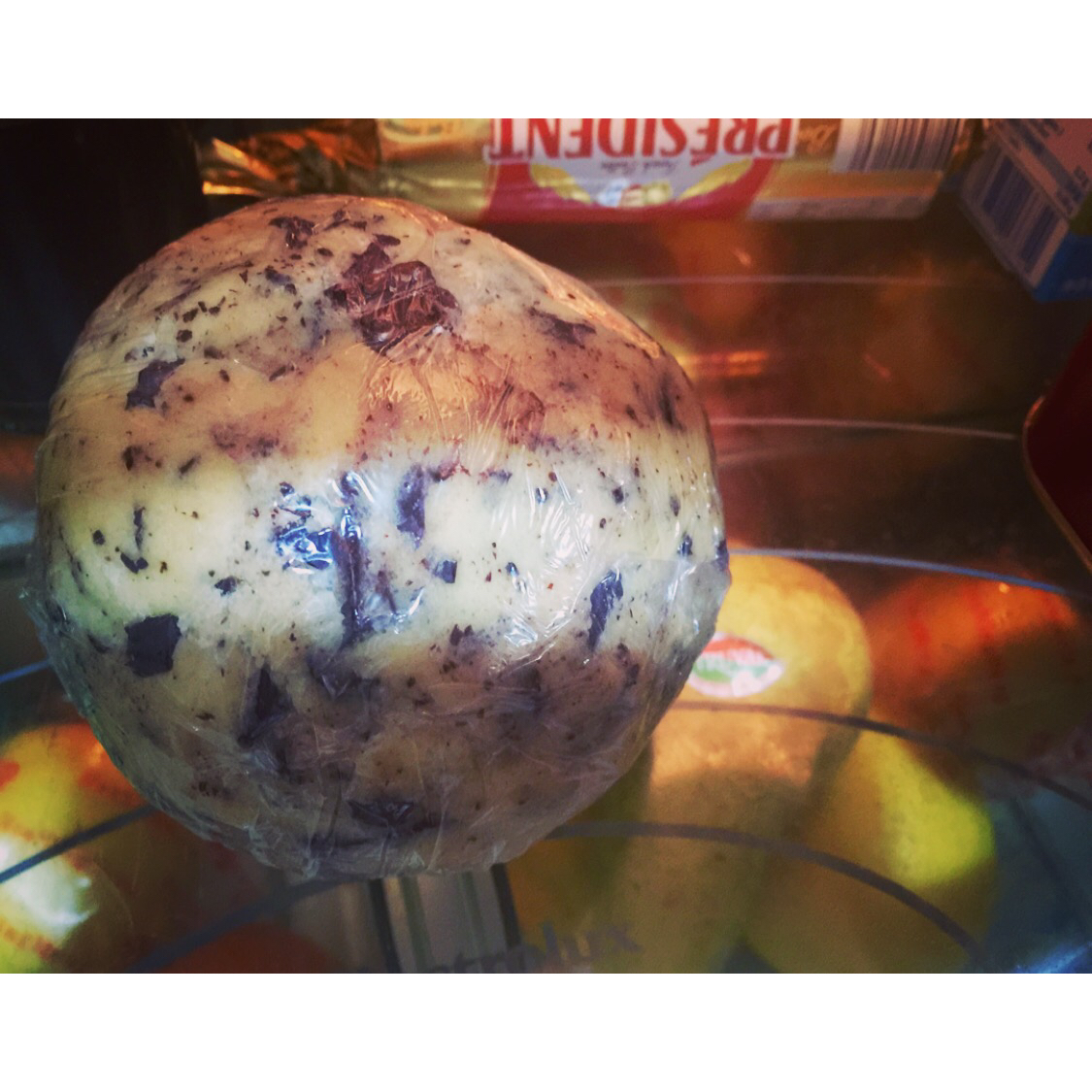 还是上次做的,年前的存图了!72h的面团可能冻久了,又是冬天,挖球后直接烤扁下去一点点就不动了,果断开烤箱用勺子暴力按扁...