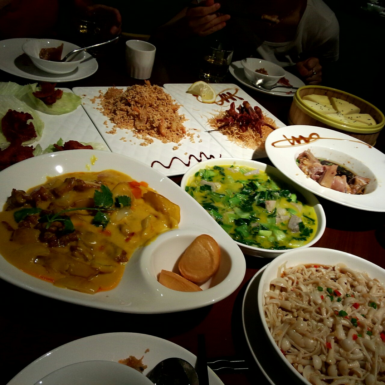 今天晚上找了一家东南亚融合餐厅吃晚饭,两个人吃了六道菜一份点心,外加一瓶啤...