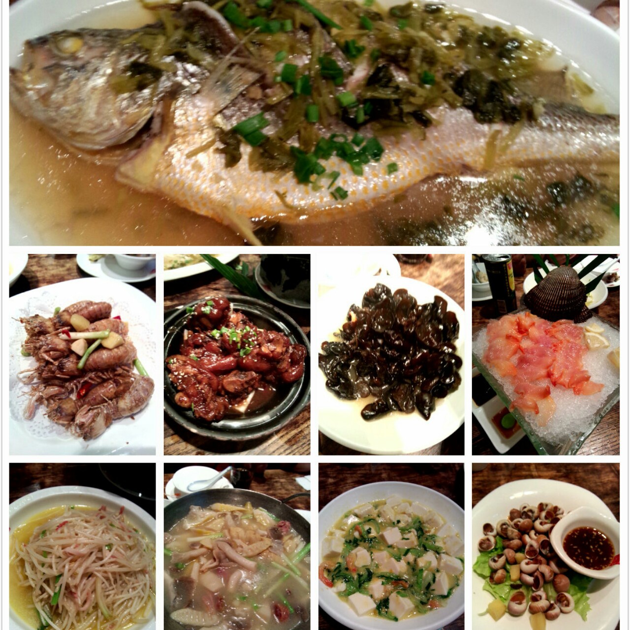 雪菜蒸野生大黄鱼,椒盐虾菇...