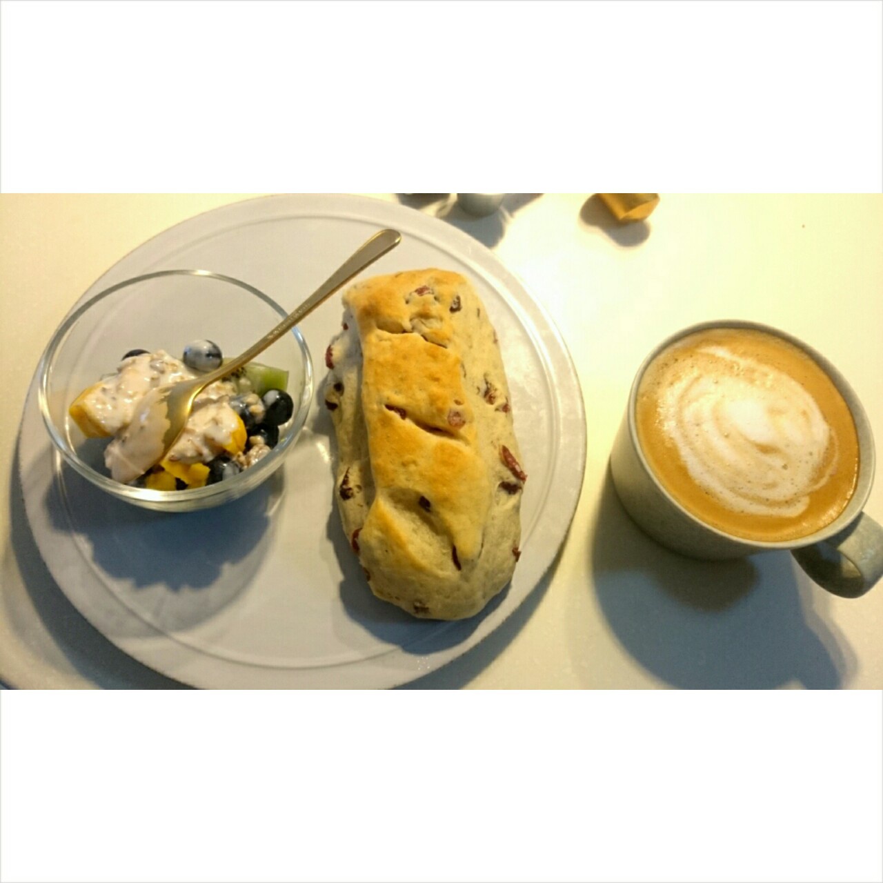 蔓越莓面包+水果燕麦沙拉+咖啡