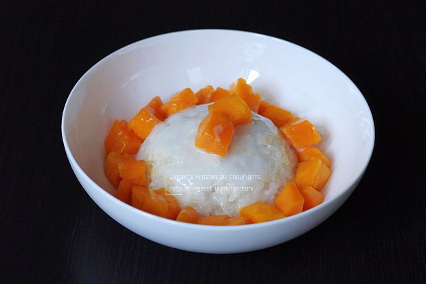 材料:糯米250克、椰浆200ml、白砂糖50克、盐3克、芒果2个、玉米淀粉...
