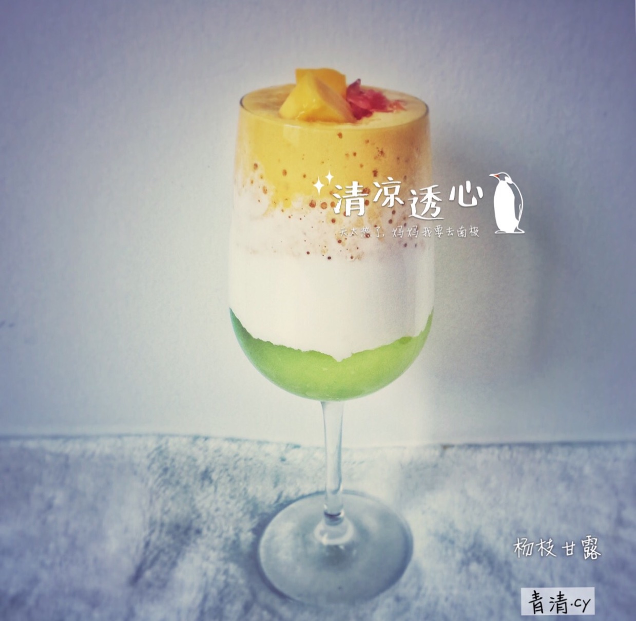 芒果多加了一个,破壁机威力太强大,打出的芒果浆太浓稠啦,倒下去有气泡呢