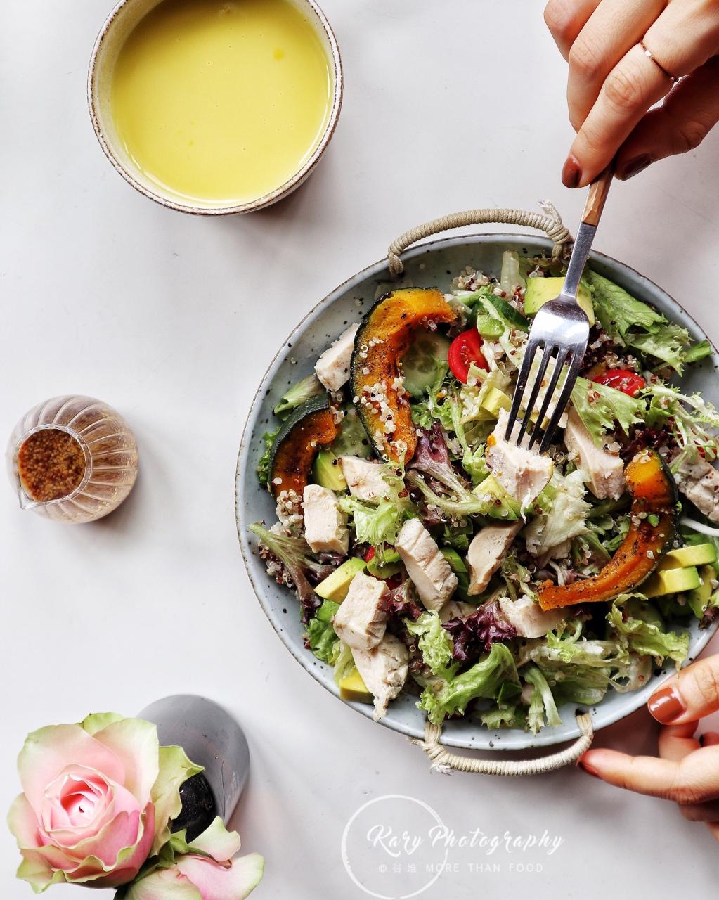 所以我常常吃沙拉,洗干净后新鲜蔬菜,配牛油果、配水果、配奶酪、配坚果……酱汁也是尽可能简单,油醋汁又健康又方便,是最常吃的。