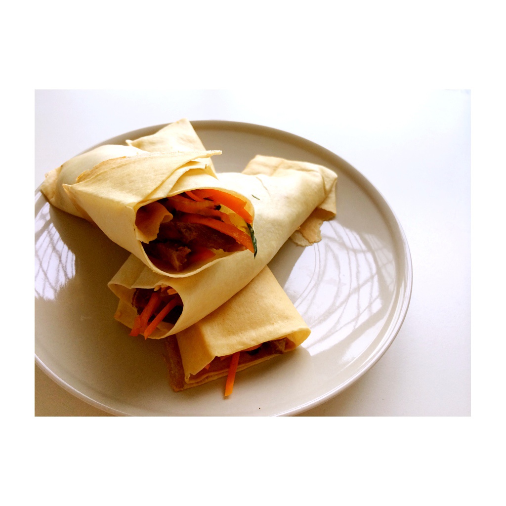 山东煎饼卷黄瓜胡萝卜拌牛肉~