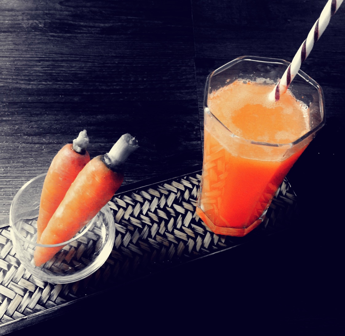 黑暗料理第五天第一餐:胡萝卜;元宝不爱吃胡萝卜,我榨汁加了点苏打水;元宝说她要吃午饭,可怜的娃-_-# #...