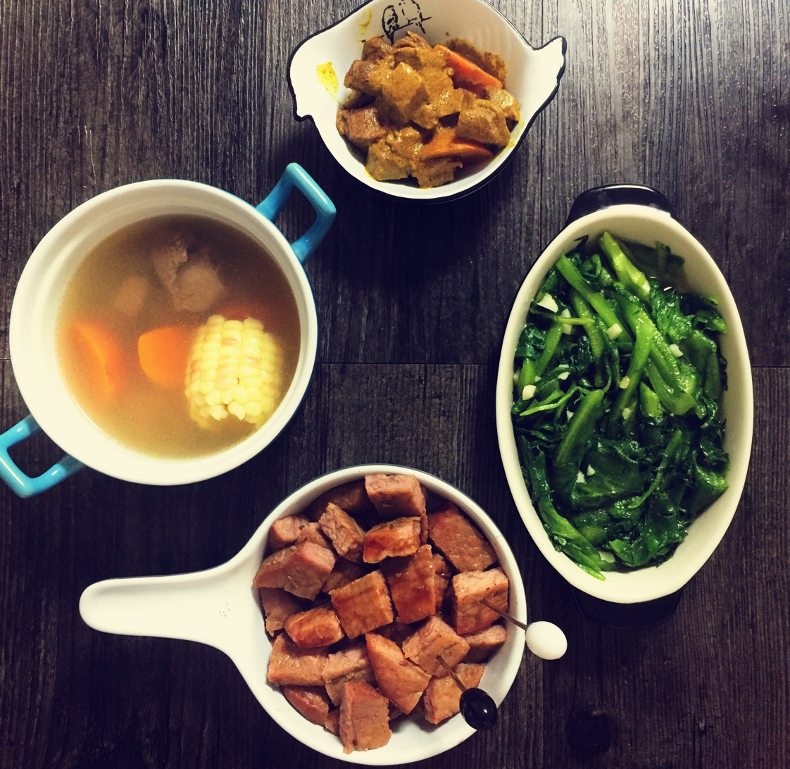 黑暗料理第八天第三餐:牛肉200克,生菜若干;今天真的是牛肉3吃了,烤牛肉、咖喱牛肉、牛肉汤……;我容易嘛...