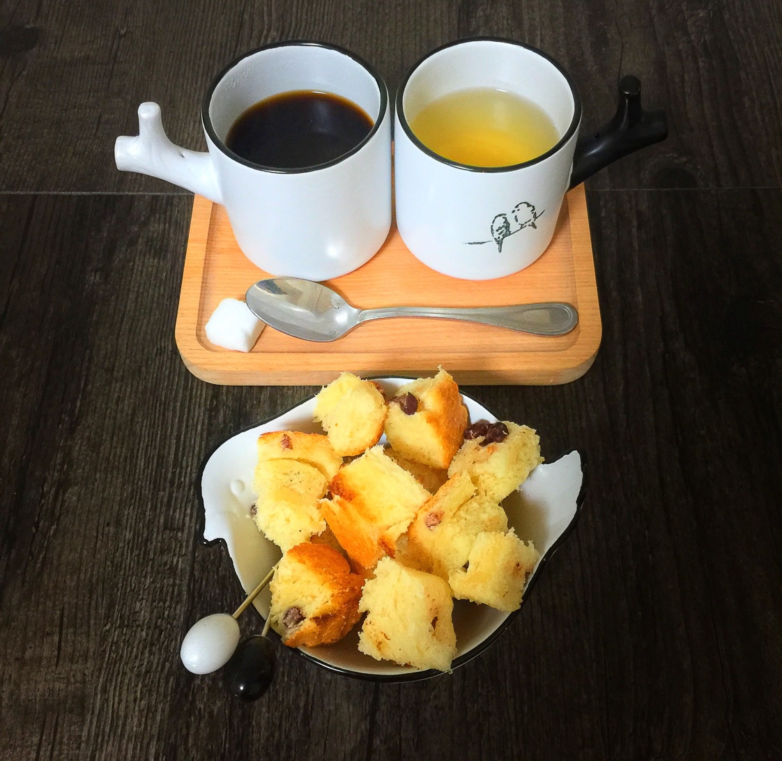 黑暗料理第六天第一餐:黑咖啡一杯、吐司一片;元宝说不要喝咖啡,改喝柠檬水;