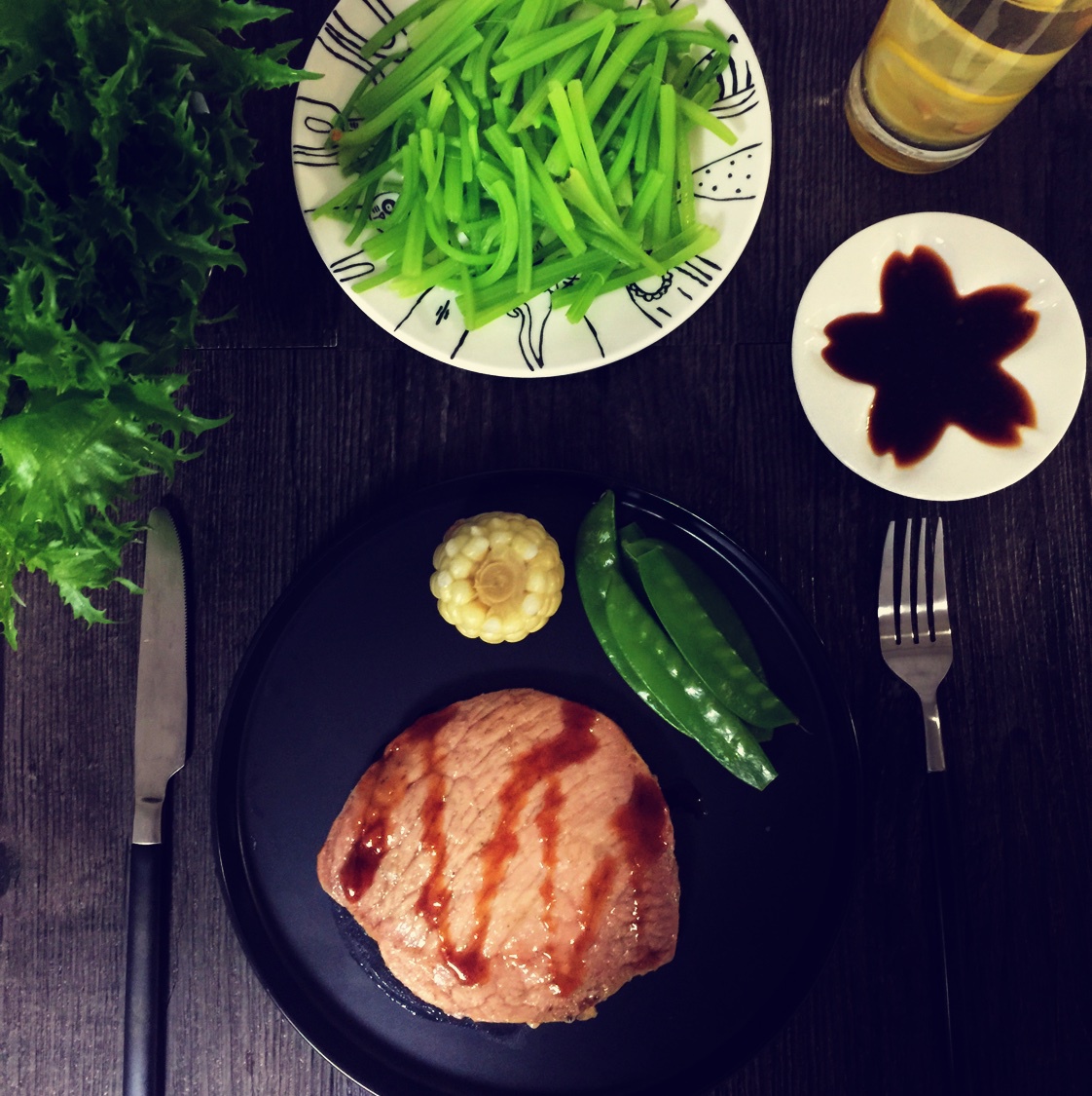 黑暗料理第五天第三餐:牛排200克、生菜若干、芹菜若干;