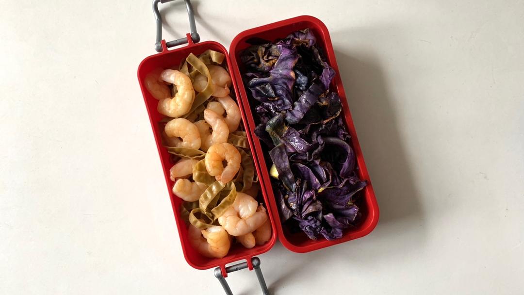 姜黄粉烤紫甘蓝+虾仁炒扁豆意面