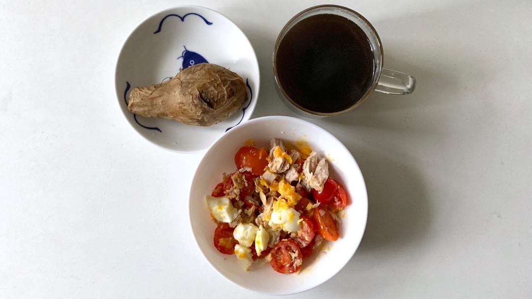 黑咖啡+红薯+金枪鱼鸡蛋番茄沙拉