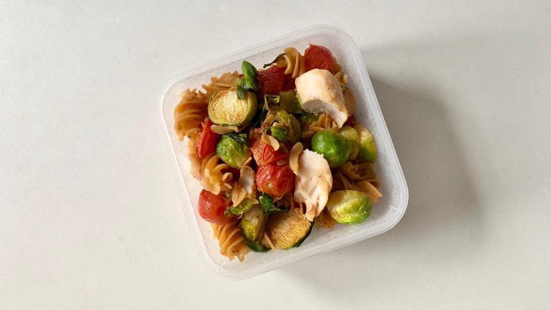 抱子甘蓝+小番茄+鳕鱼+扁豆意面