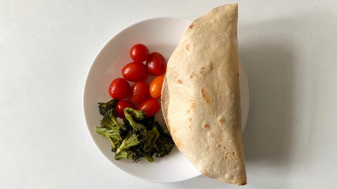 三文鱼糙米卷饼+西兰花+小番茄