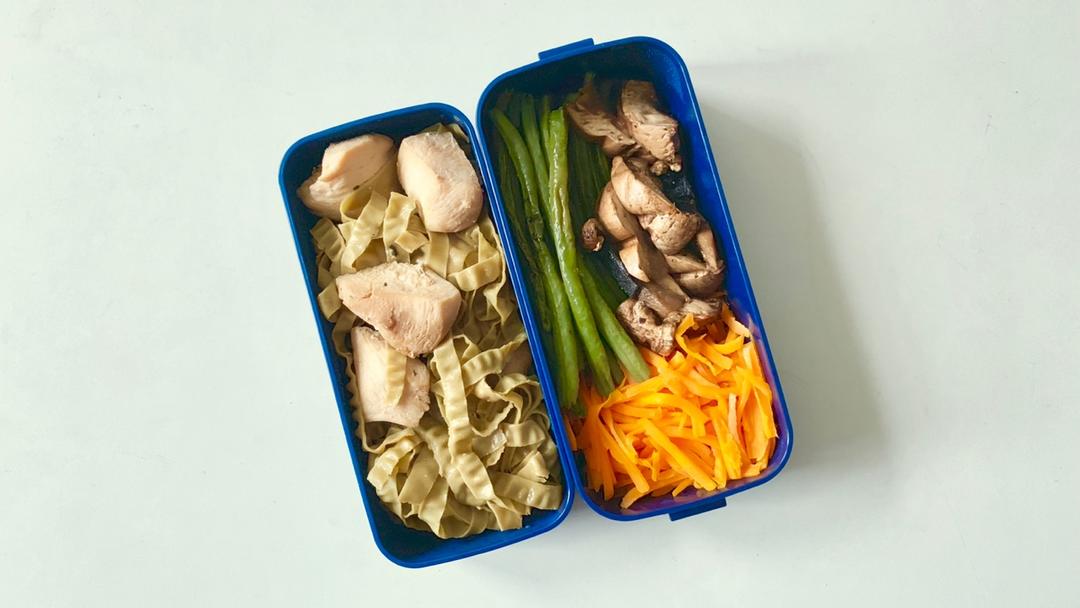 扁豆+蘑菇+胡萝卜+鸡胸肉意面