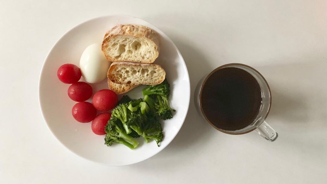 黑咖啡+鸡蛋+西兰花+樱桃番茄+夏巴塔