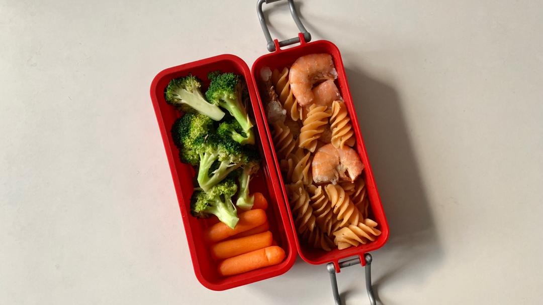 虾仁扁豆意面+西兰花+小胡萝卜