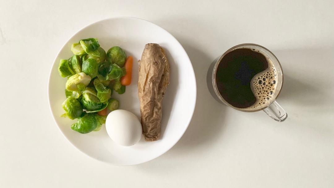 黑咖啡+抱子甘蓝胡萝卜+鸡蛋+红薯