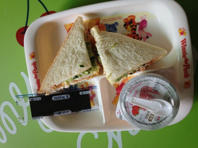 早安,小朋友的早餐:青瓜鸡蛋三文治、酸奶+紫菜