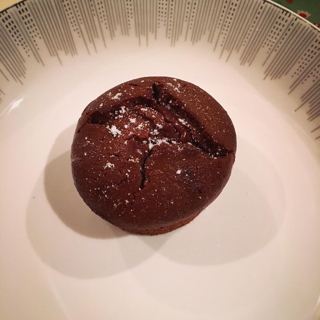 第一次做熔岩巧克力蛋糕,爆浆,成功。