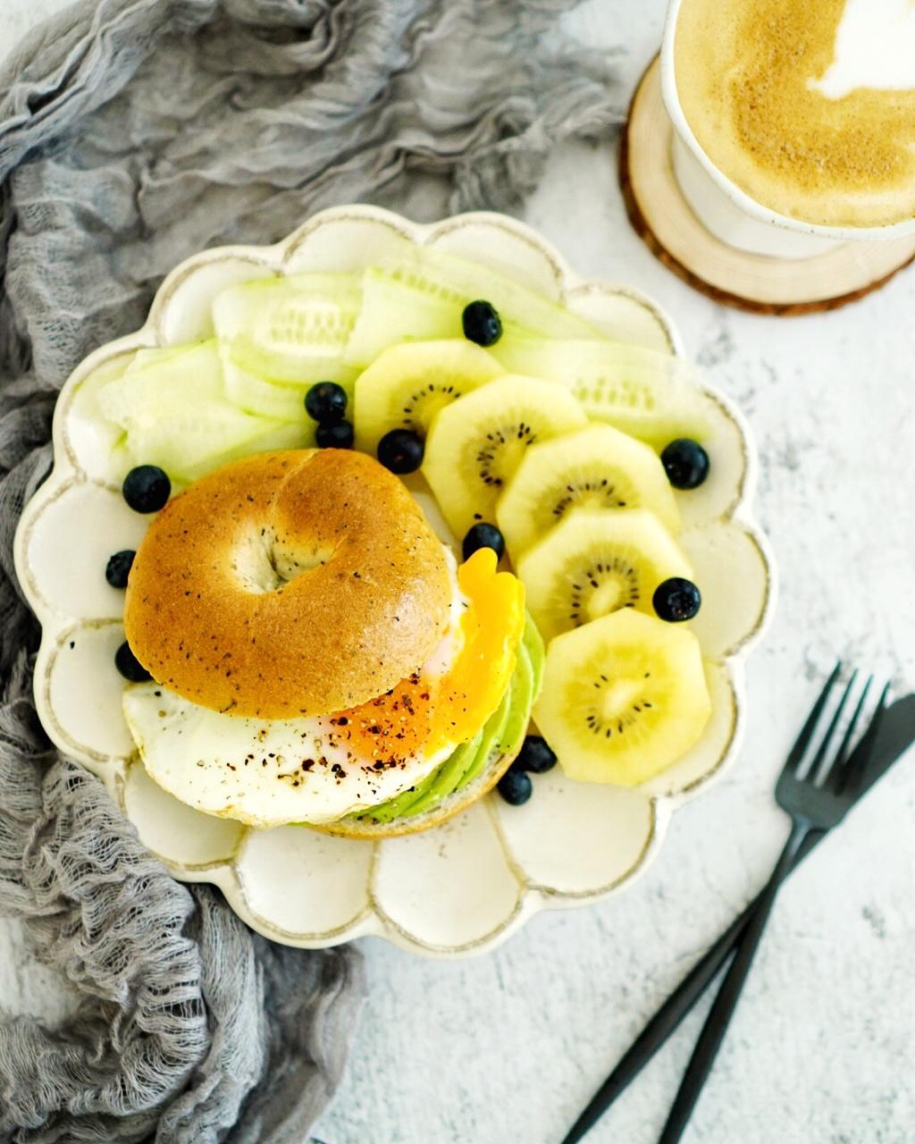 贝果是最喜欢的面包之一😉😉夹煎蛋流油果