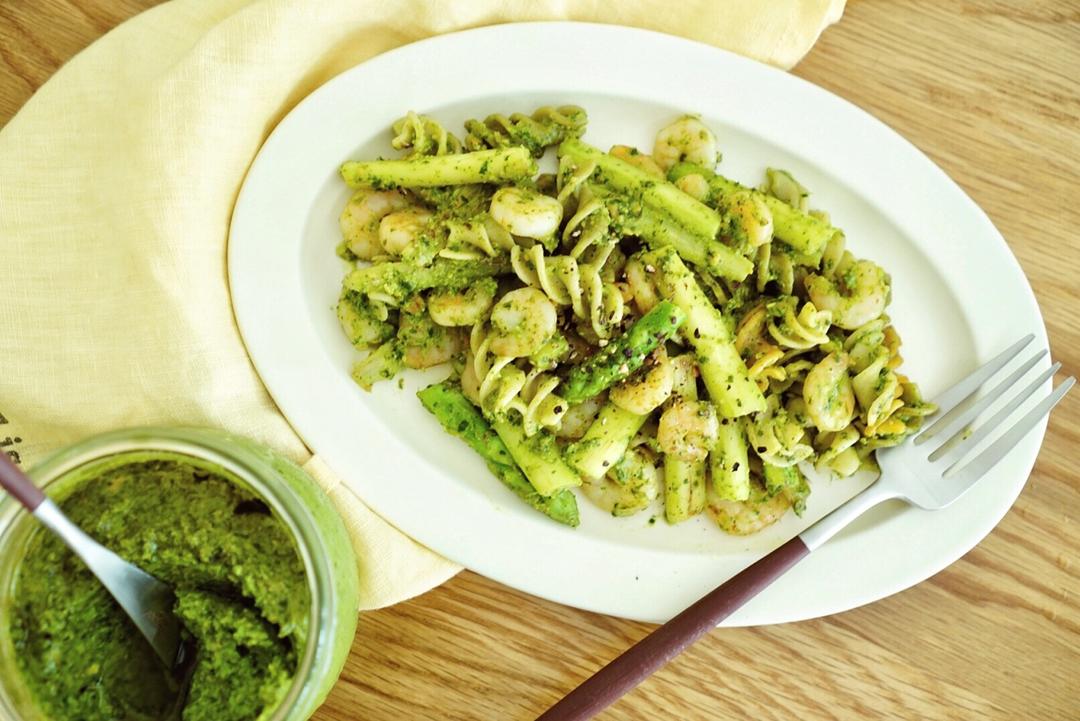 芦笋虾仁青酱意面,卡布