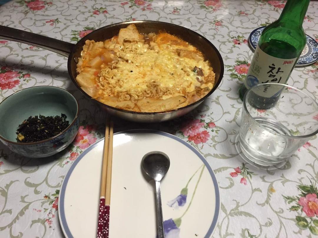 2016年最后一顿饭,年糕火锅用宗家府的泡菜火锅底料做超级好吃!满足!