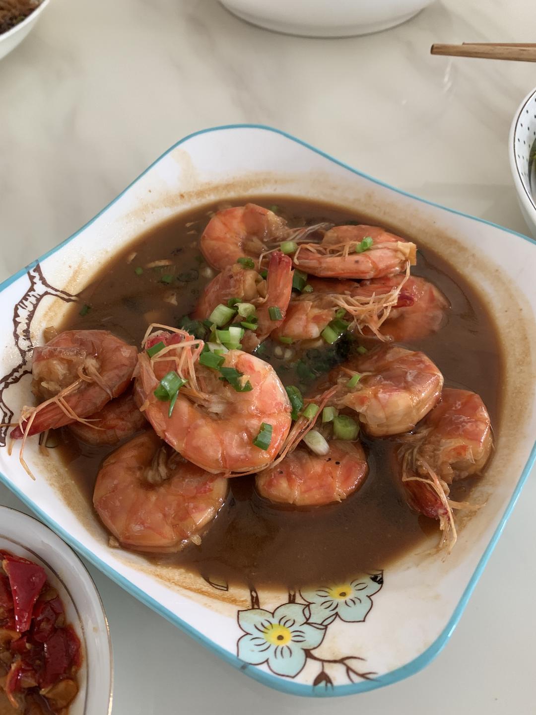 第一次做油焖虾!结果超级成功!看起来又是一道大菜,哈哈哈哈哈,以后宴请朋友可有硬菜招待...
