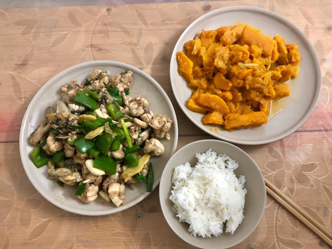 爆炒田鸡+黄金南瓜