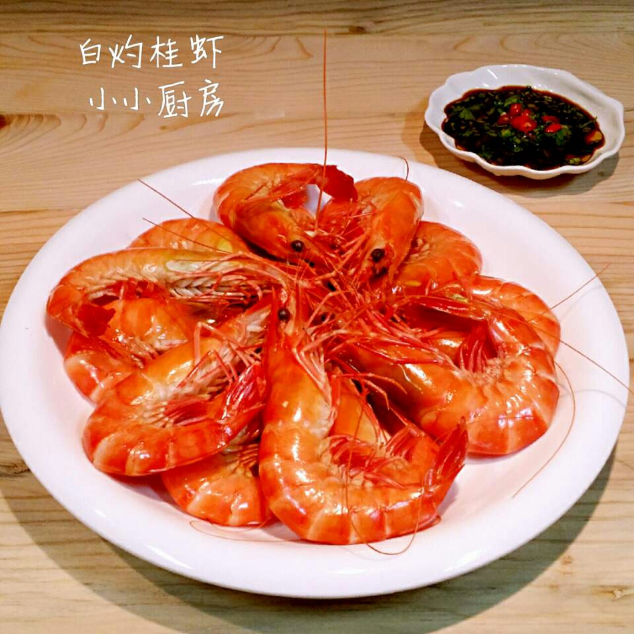 很鲜的桂虾,下锅时还不断地跳,生猛的海虾最喜欢白灼原汁原味,蘸着汁吃特别鲜美。